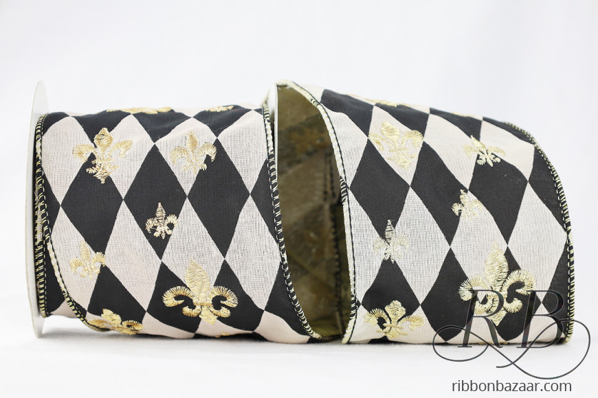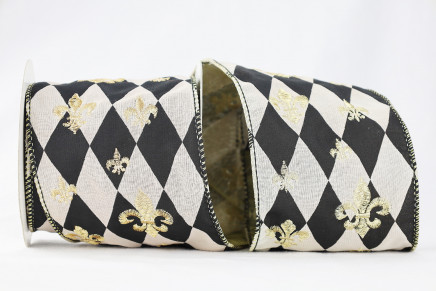 Gold Embroidered Fleur de Lis Design with Argyle Checkered Pattern