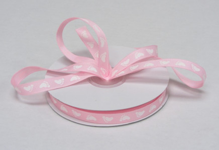 This 3/8" wide baby feet ribbon comes in traditional blue and pink colors.