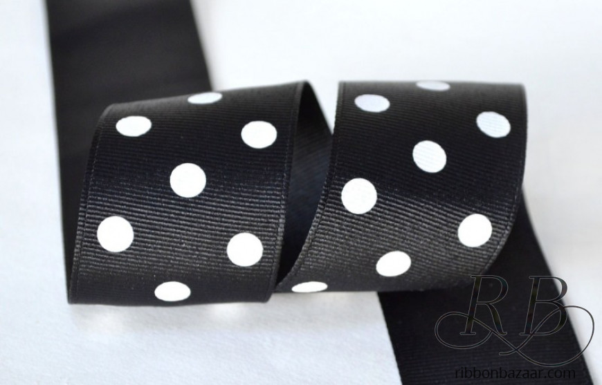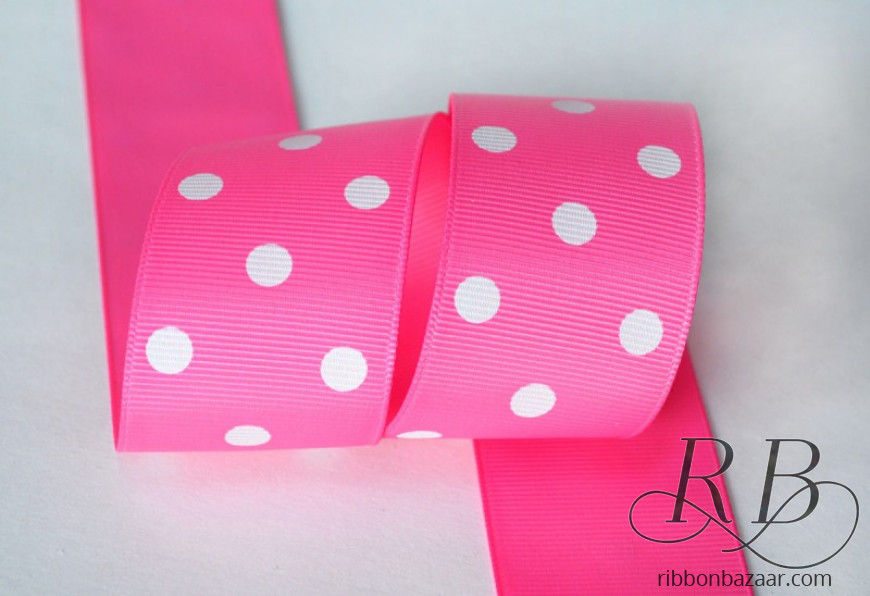 Shop from over 25 colors in widths including 3/8, 7/8, 1.5 and 2.25 inch. The number of lines of dots changes with the width of the ribbon with the 3/8 inch ribbon including a single line of dots, 7/8 inch with two, 1.5 inch with three, and 2-1/4 inch featuring four lines of polka dots.