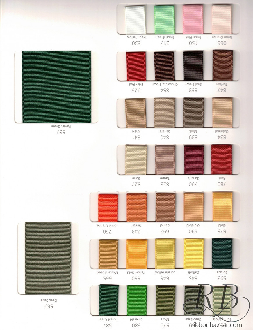 - Three pages of seventy 5/8" wide color samples including an availability chart.