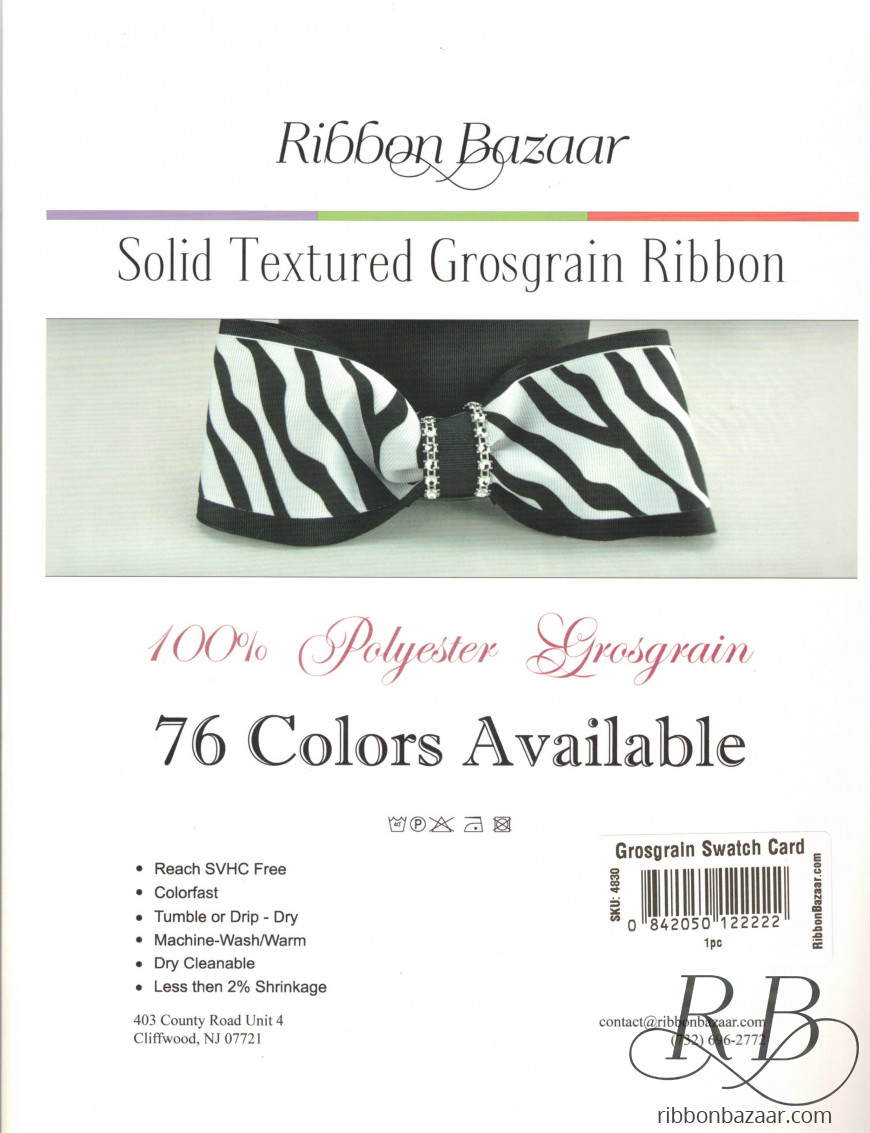 - Inner page contains several inch long samples of the 3" & 4" red grosgrain ribbon.