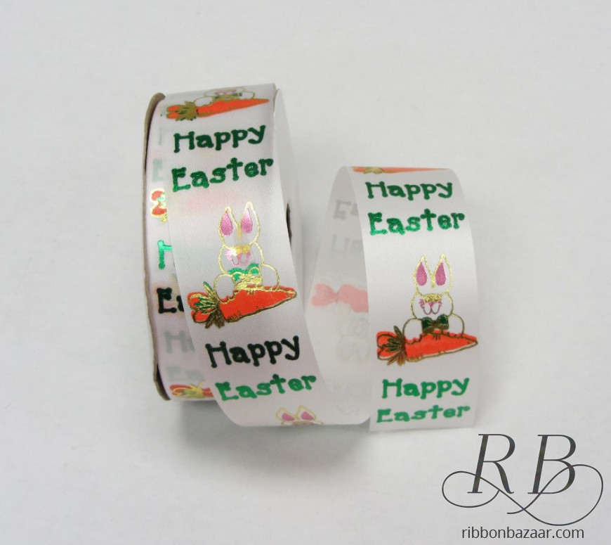 - Bright and cheery rabbit print on white ribbon