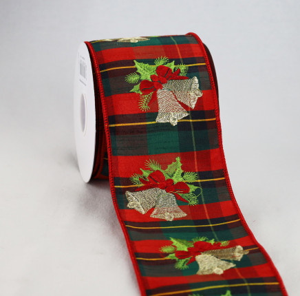 Jingle & Holly Golden Bells Wired Ribbon