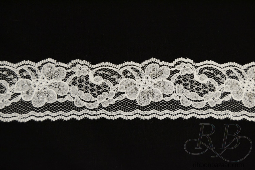 - Delicate white lace with shimmering silver thread