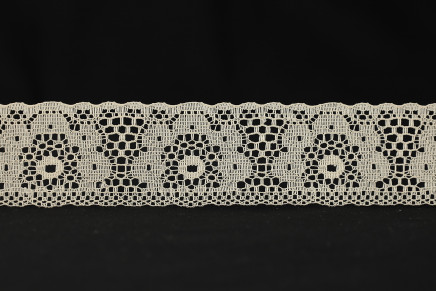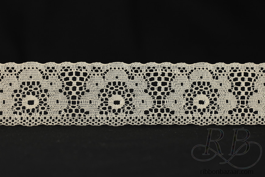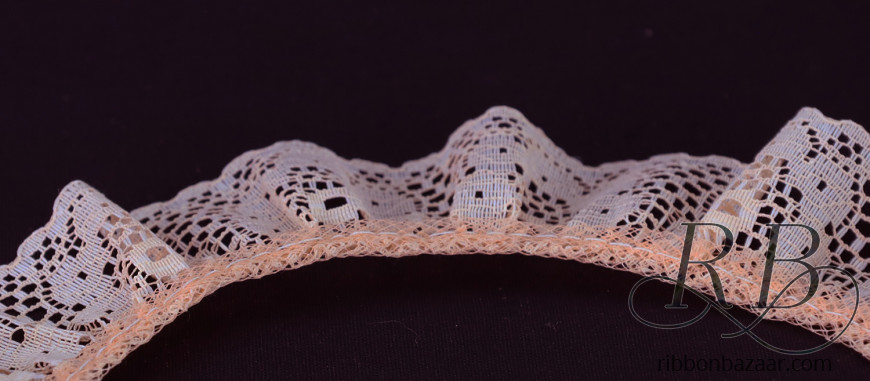 - Available in natural and white, flat or gathered ruffling and 1-3/10" width