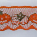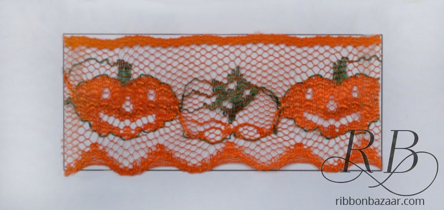 This quirky but fun pumpkin lace is certainly a big hit for Halloween. No other Halloween laces can beat this for adding that autumn touch to any craft project. With fine detailing surrounding jack o'lanterns, this is the perfect decorating trim for paper crafts such as cards and scrap booking. The cute orange smiling pumpkins are adorable with their dark green stem attached, just like the real thing. Alternating pumpkin faces with a simple generic orange gourd, this decorative trim will stand out among plain orange or black laces. It will add playfulness to spookier wreaths, centerpieces and wall hangings and any other Halloween or fall themed project your imagination will take you.