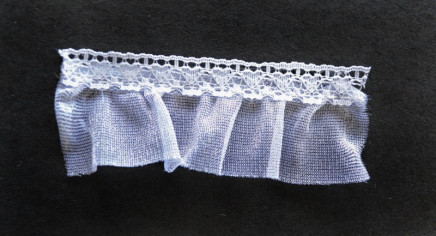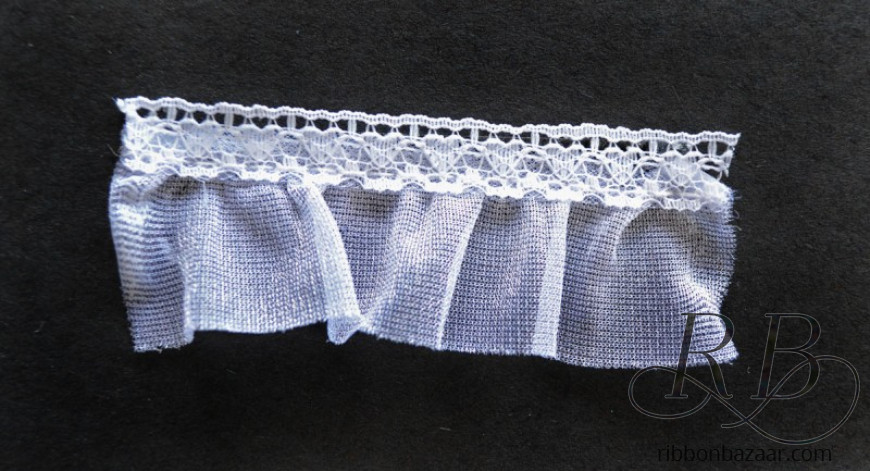 - 1-inch wide gathered lace in elegant white