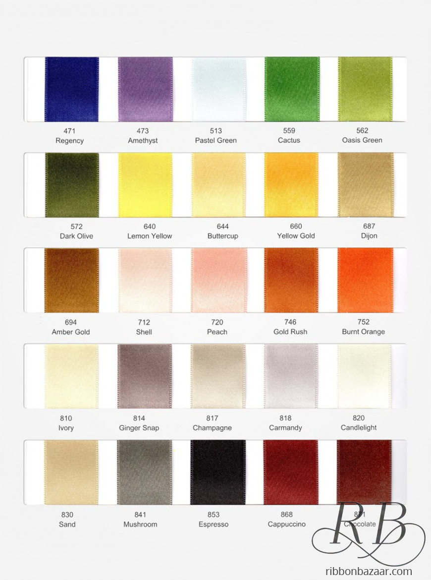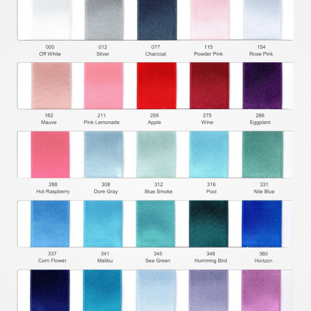 - Has 50 color swatches of our deluxe double faced satin ribbon.