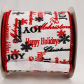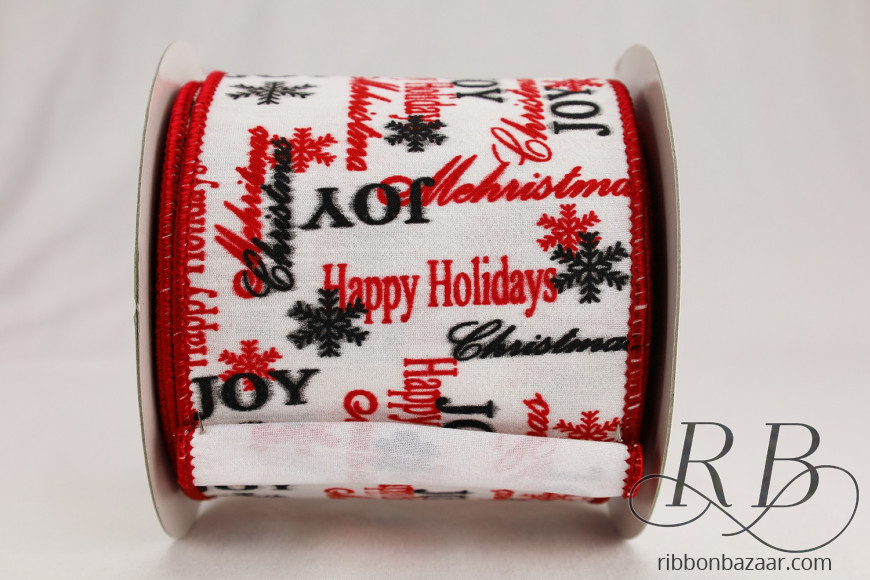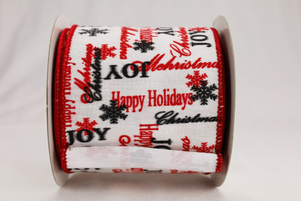 - This lovely white wired dupioni ribbon is complemented by Christmas wishes throughout.