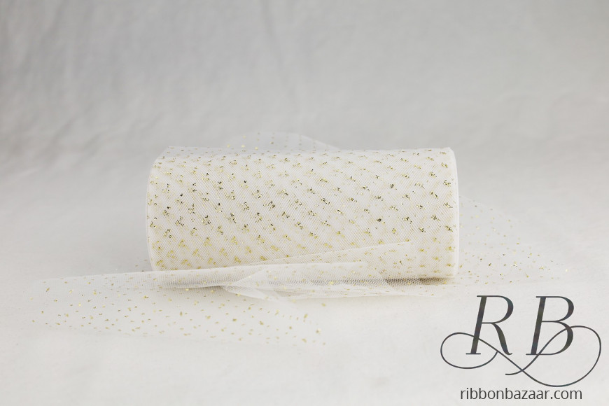 Add some twinkling charm to your next project with our Metallic Dots Tulle. Beautifully crafted with playful metallic dots that glimmer in the light, this tulle is perfect for creating eye-catching bows, unforgettable centerpieces, and whimsical wedding decor. Available in both white with gold dots and white with silver dots, our Metallic Dots Tulle comes in 25yd lengths and two width options of 6" or 54". Bring your creative vision to life with this stunning and versatile tulle!