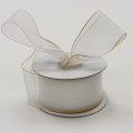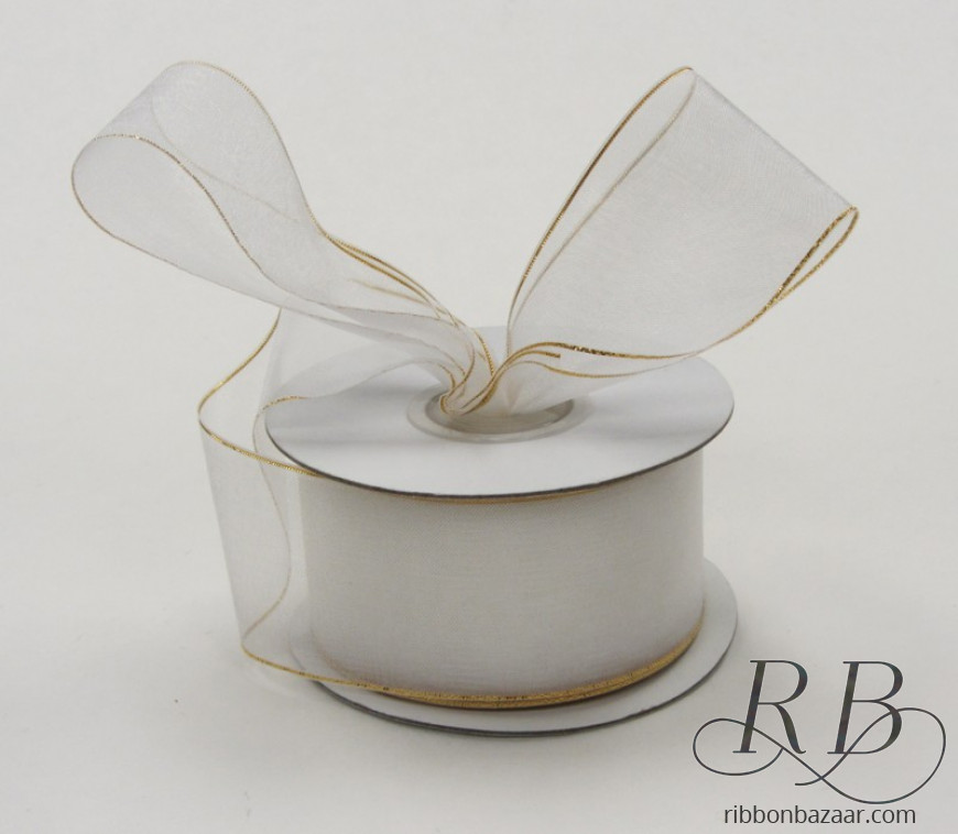 Make your gift or decor shine with the luxurious Metallic Edge Organza ribbon. The sheer organza material creates an elegant look, while the metallic edge adds a touch of glamour. Available in white or ivory with gold or silver edge, each 25yd roll comes in a choice of widths. This ribbon is perfect for adding a finishing touch to any project, whether it's wrapping a gift or decorating a table. Order yours today and add a touch of sophistication to your next project!