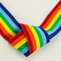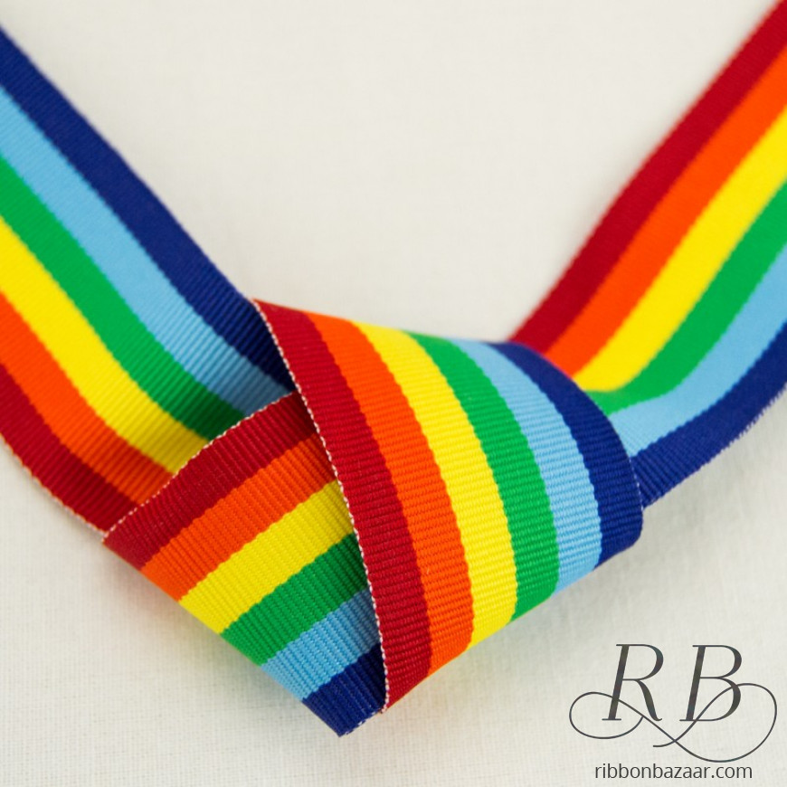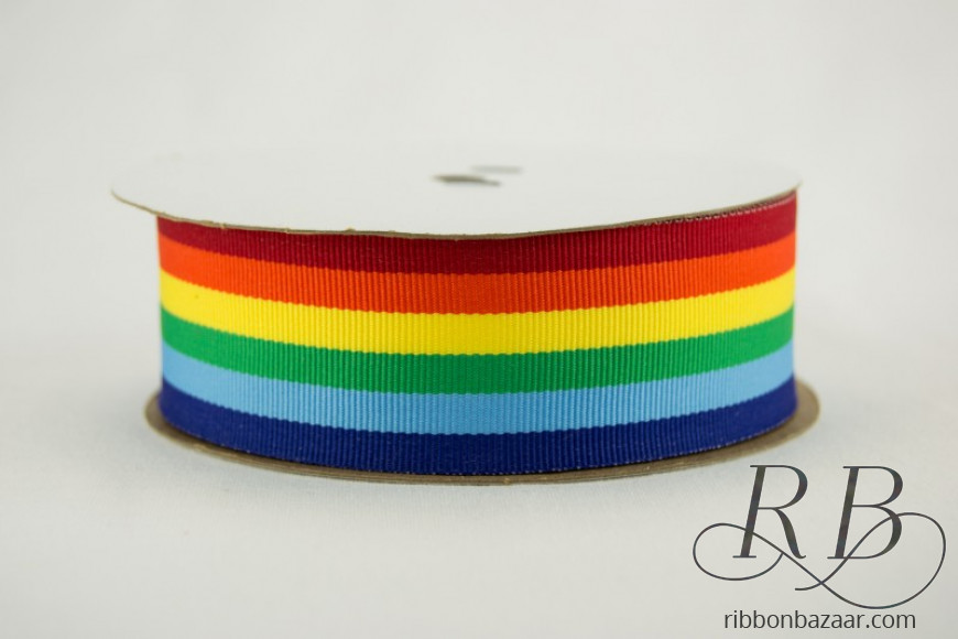 The cheerful stripes on this rainbow grosgrain ribbon coordinate well with any bright color and complement many fabric patterns, including florals, plaids, polka dots, geometrics and abstracts. Our rainbow stripe ribbon comes in sizes including 3/8”, 5/8”, 7/8” and 1-1/2” and is machine washable for easy care. It will add eye-catching color and flair wherever it is used.