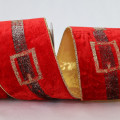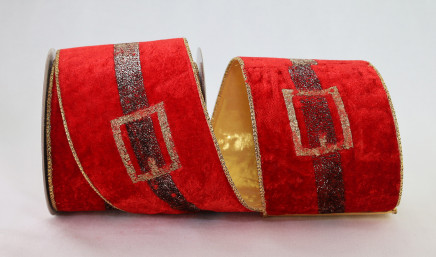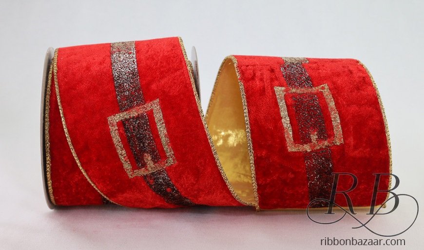 - This lovely red velvet ribbon features a Santa's belt pattern fit for any Christmas themed project.