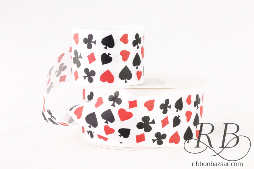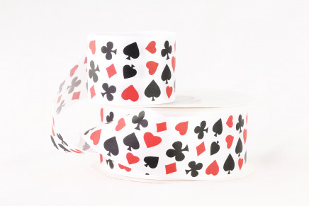 Single Faced Satin Multi Line Playing Cards, Casino Themed Ribbon