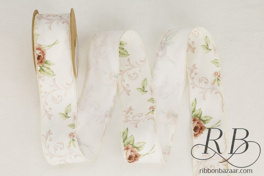 Victorian Floral Brocade Ribbon with Embossed Edge