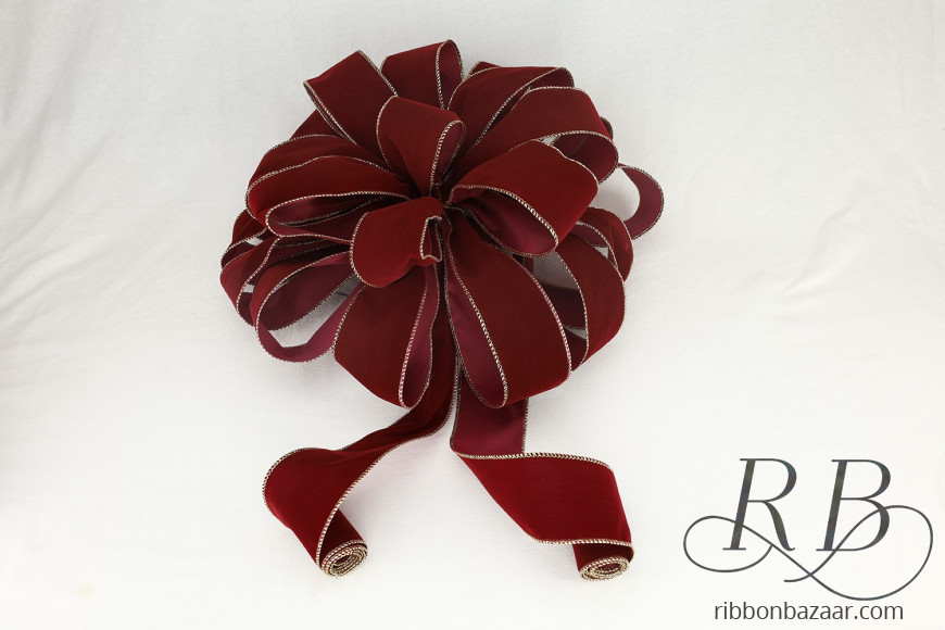 - Made from 2-1/2" and 4" wide, waterproof wired velvet outdoor ribbon with a gold edge.
