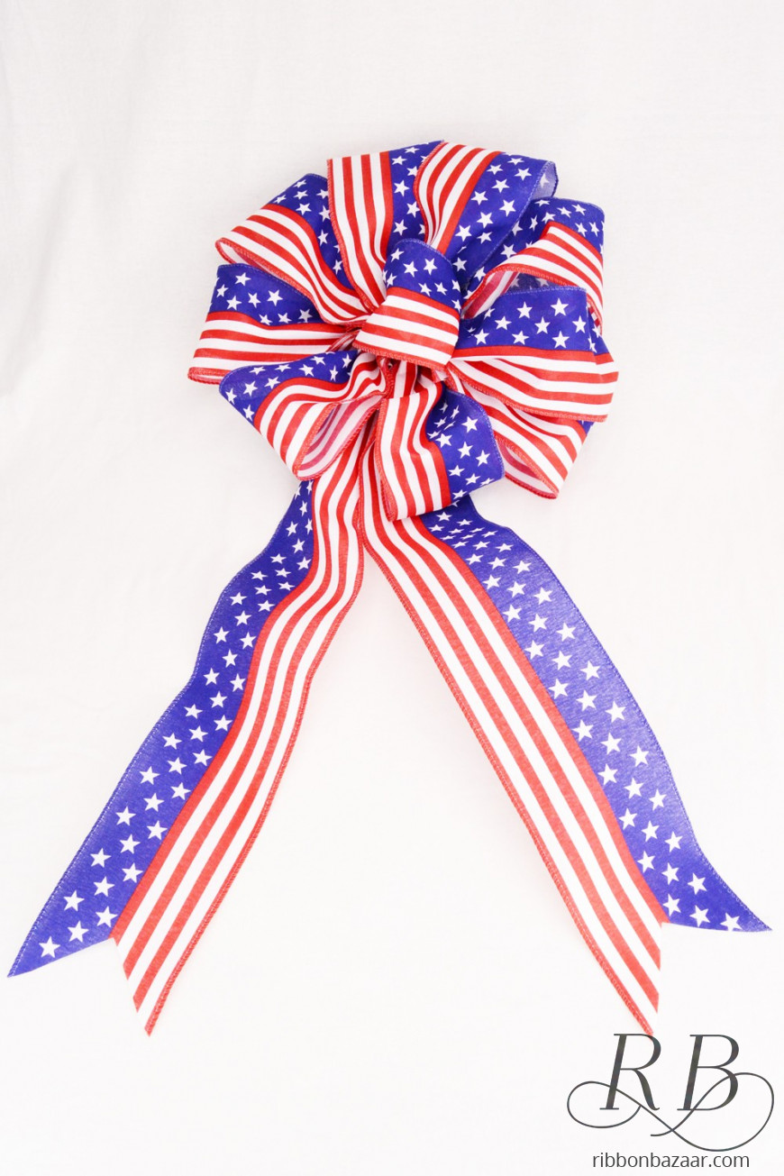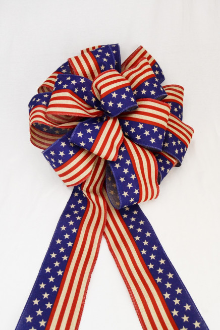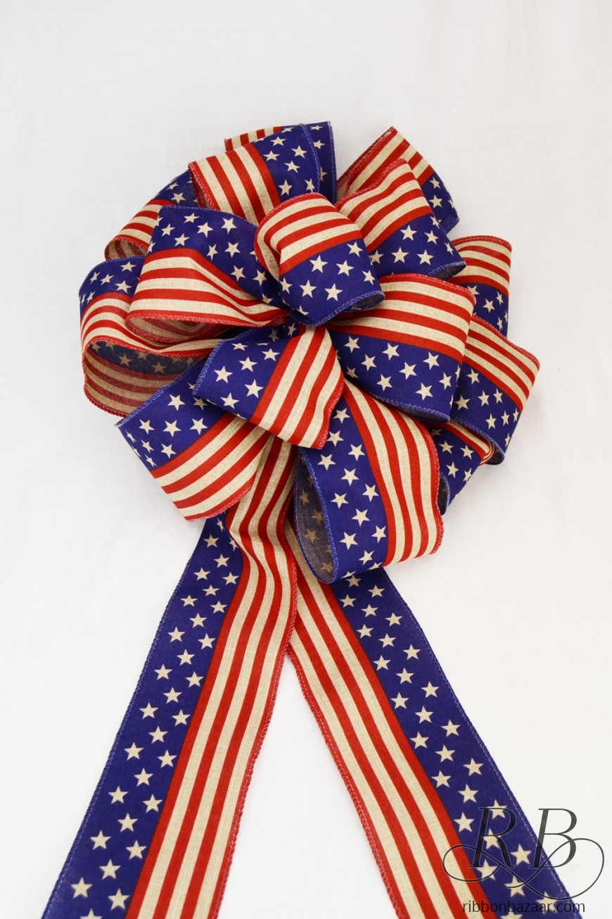 - Made from 4" wide, wired American Flag solid ribbon.