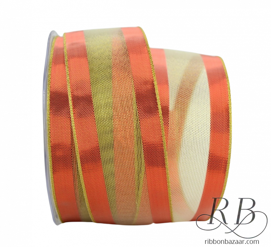 - Luxurious wired sheer ribbon infused with metallic copper and gold accents