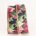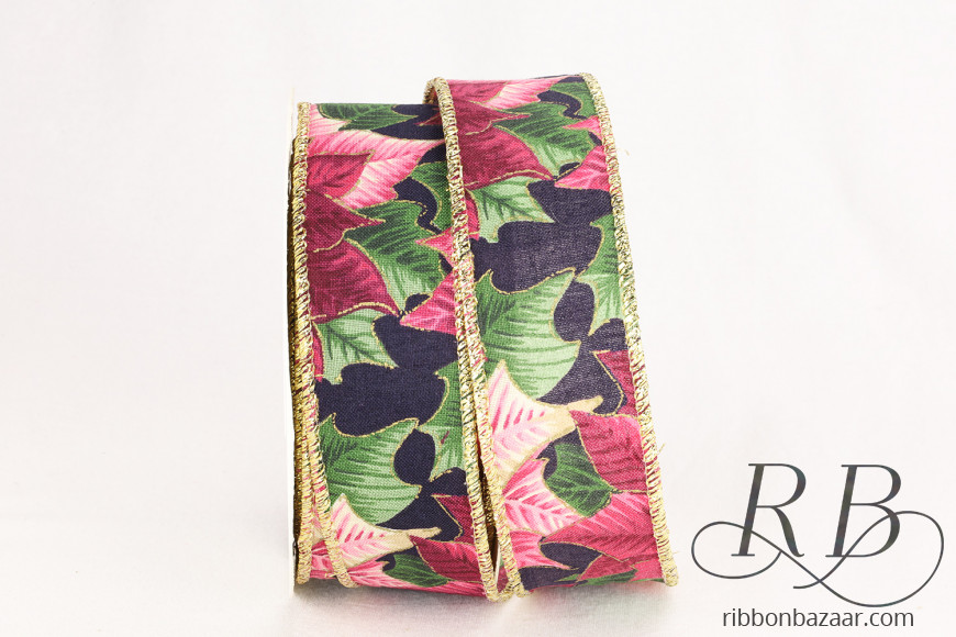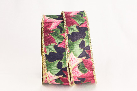 Wired Edge Berry Leaves Christmas Ribbon
