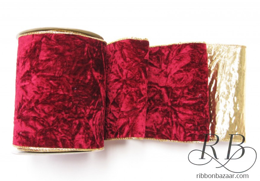 Experience luxury with our Wired Goldback Crushed Velvet Ribbon! Perfect for adding an opulent touch to your craft projects. The ribbon is made from high-quality crushed velvet fabric and is wired for ease of use. The stunning Goldback design adds an extra layer of glam to this already gorgeous ribbon. Available in Red and Burgundy, and in 2.5 inch, 3 inch, and 6-inch widths. Each spool comes with 10 yards of ribbon, giving you plenty of material to work with. Buy now and add a touch of elegance to your next project!