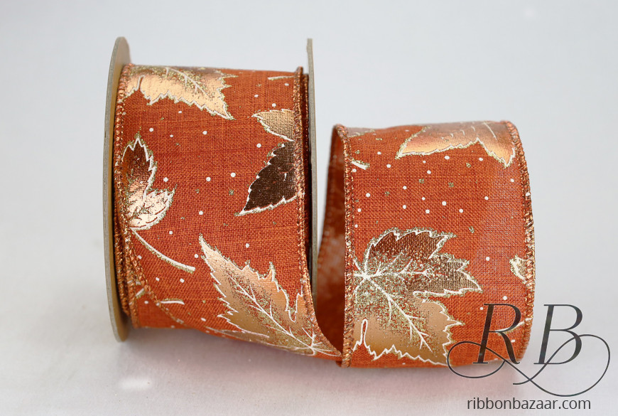 Wired Metallic Leaf Ribbon
