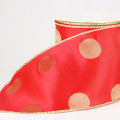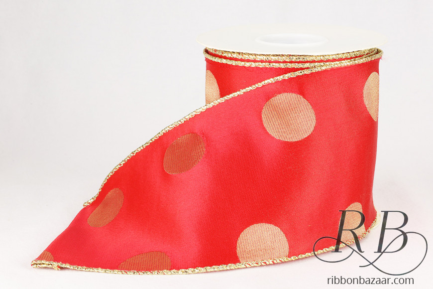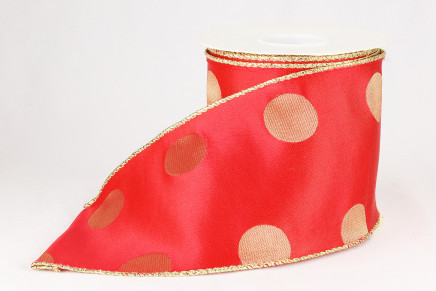 - Vibrant red ribbon with subtle gold polka dots