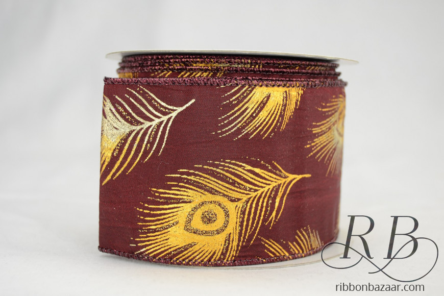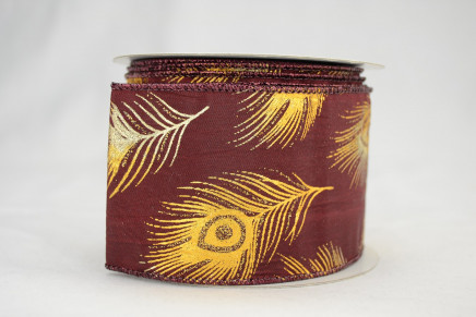 Add a touch of elegance to your crafts with our Wired Peacock Feather Ribbon. The stunning peacock feathers are carefully wired onto a sheer gold or burgundy ribbon, giving you the flexibility to mold and shape it in any way you desire. Perfect for wreaths, table decorations, and holiday crafts, this wired ribbon adds a pop of color and texture that will take your project to the next level. Available in a 2-1/2" width and at a generous length of 10 yards, you won't have to worry about running out mid-project. Make your crafts stand out with our Wired Peacock Feather Ribbon today!