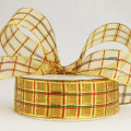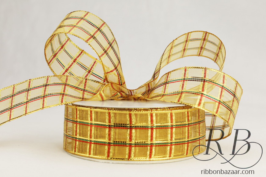 - Double-sided ribbon with check & plaid combo design and metallic edge.