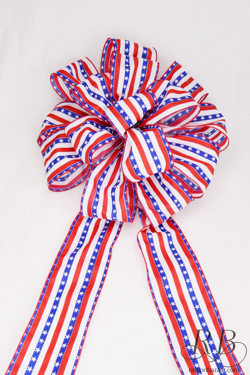 - Made from 4" wide, wired Stars & Stripes ribbon.