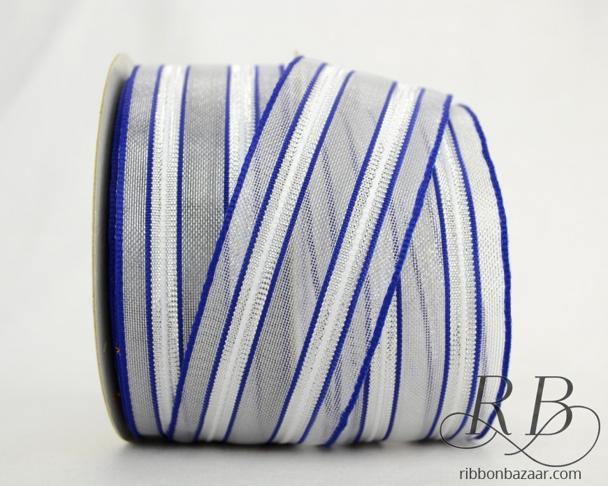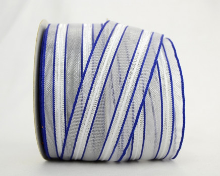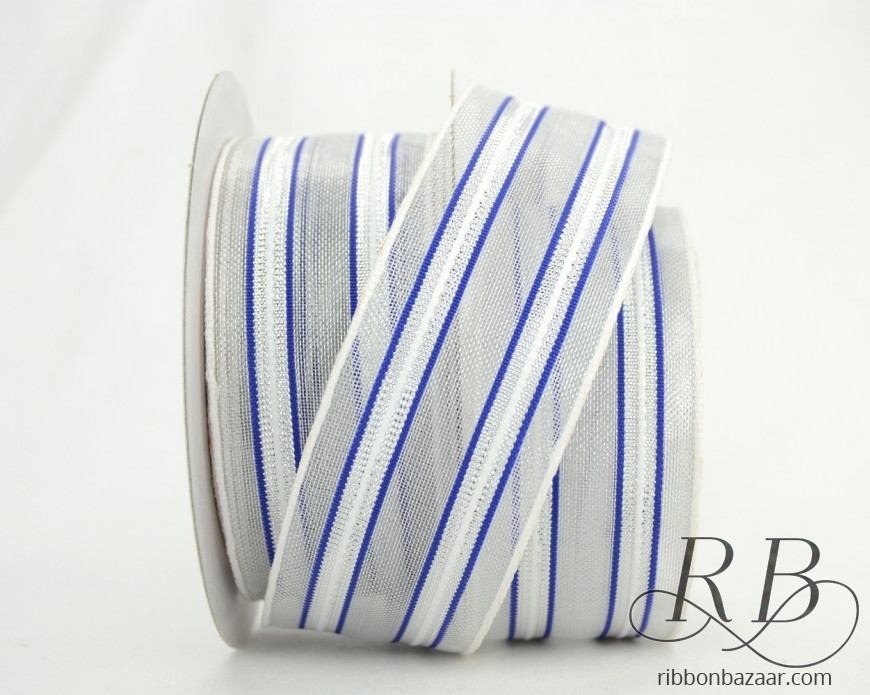 Choose white or blue sheer fabric matched with bright silver to set off whatever you pair it with. The elegant metallic stripe complements a wide variety of color schemes, making this ribbon a perfect choice for many different projects and occasions.