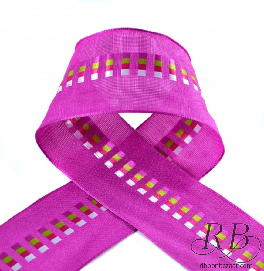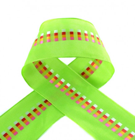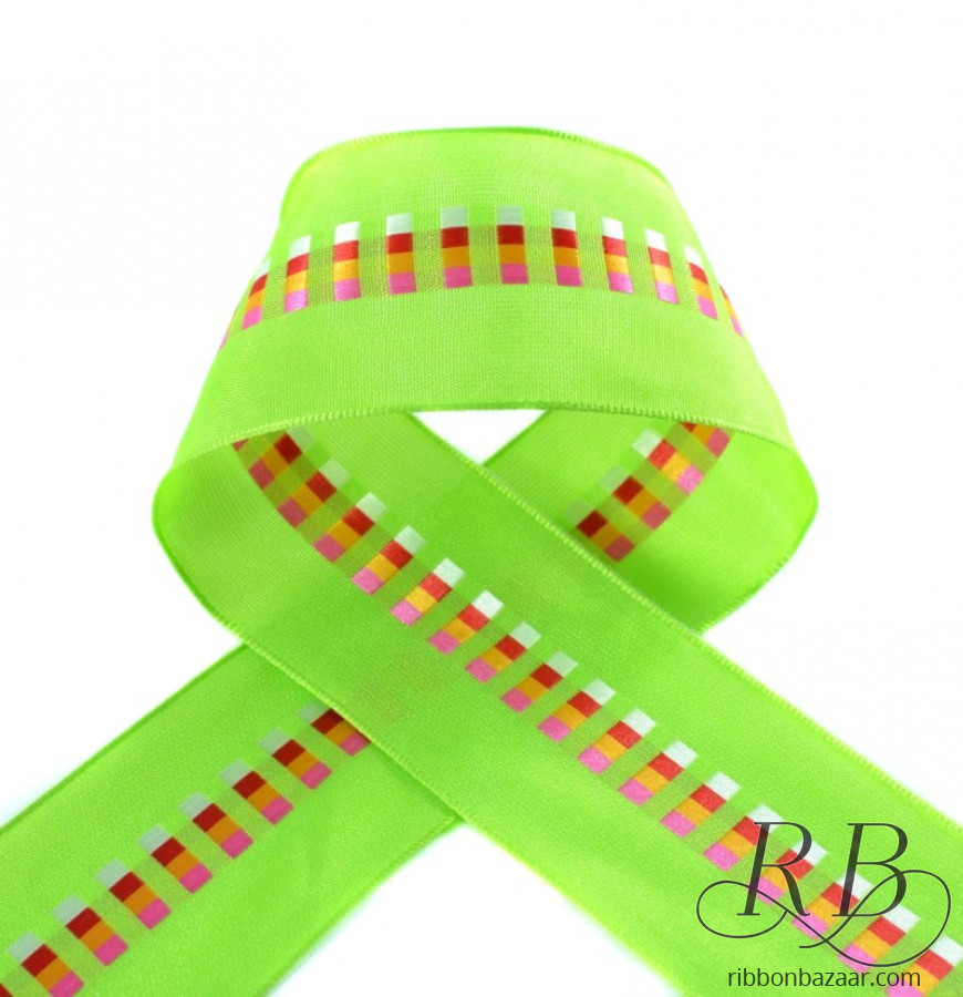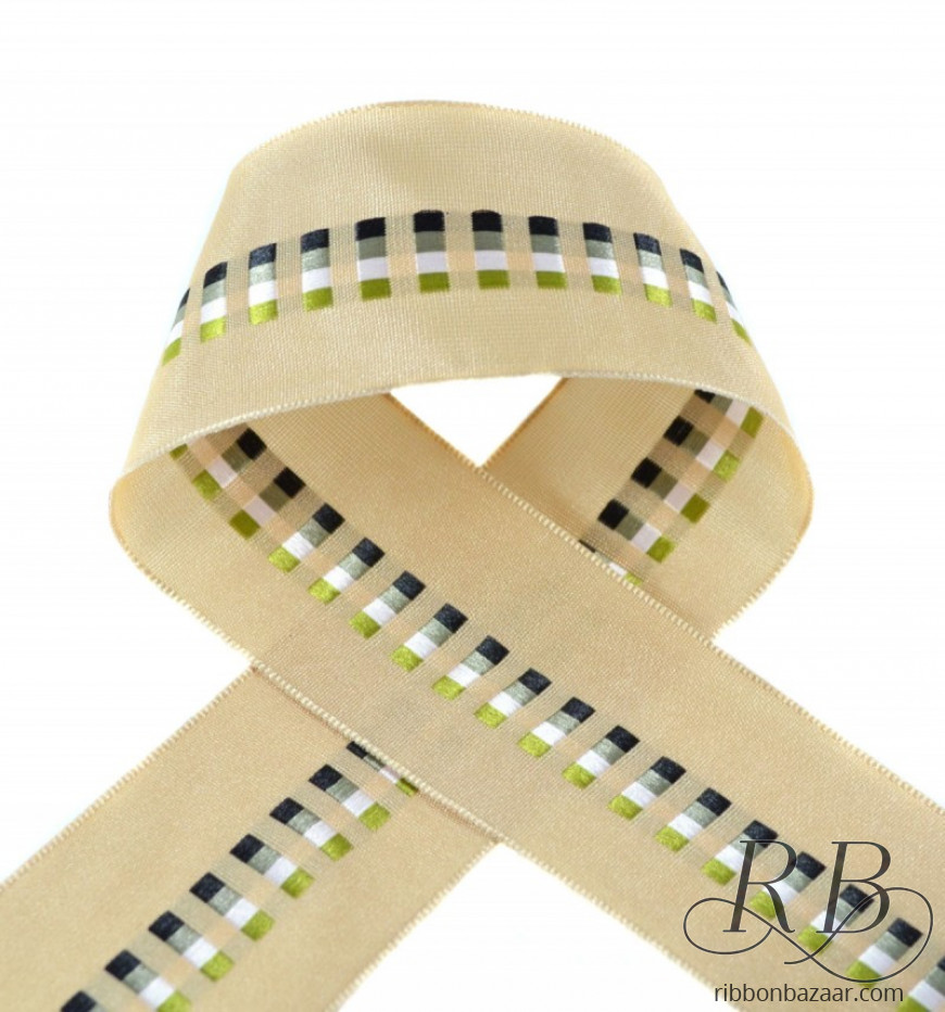 European Artisan Checkerboard Motif Wired Taffeta Ribbon