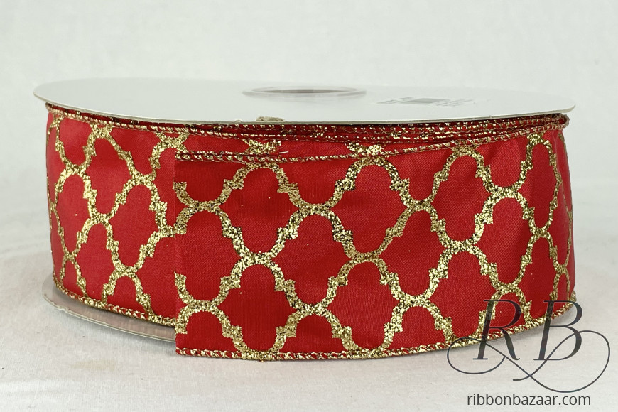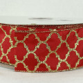 Wired Taffeta Ribbon with Gold Trellis Pattern