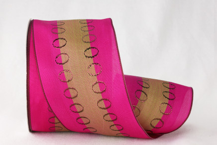Wired Woven Edge Taffeta Ribbon with Metallic Rings